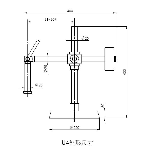 ·鑄鐵底座,防銹耐磨金屬立柱,鋁合金伸縮橫臂。與升降組SF1配合使用,可任意方向觀察物體,擴大觀察范圍.