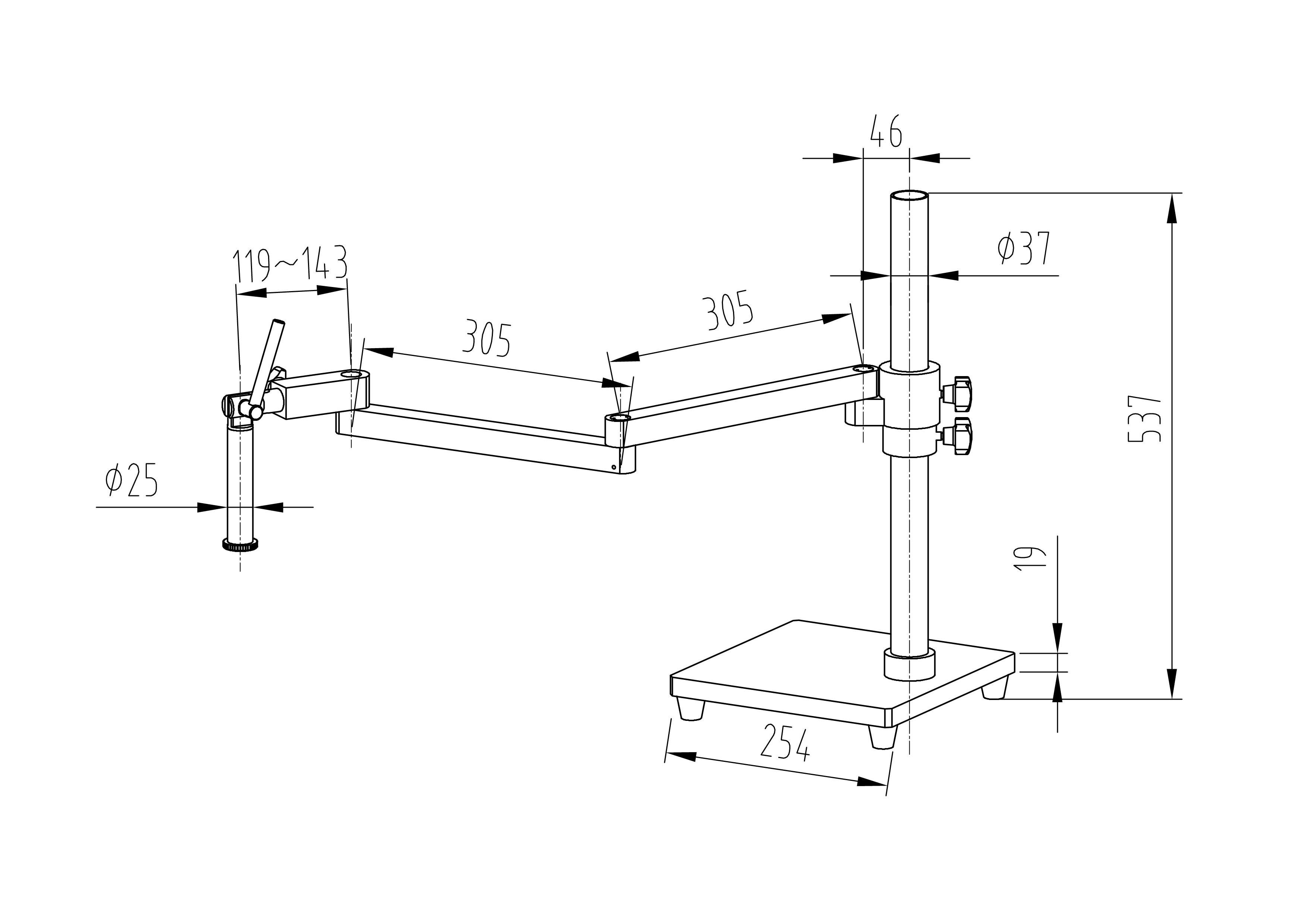 · 立柱高度:475mm,直徑:Φ37mm