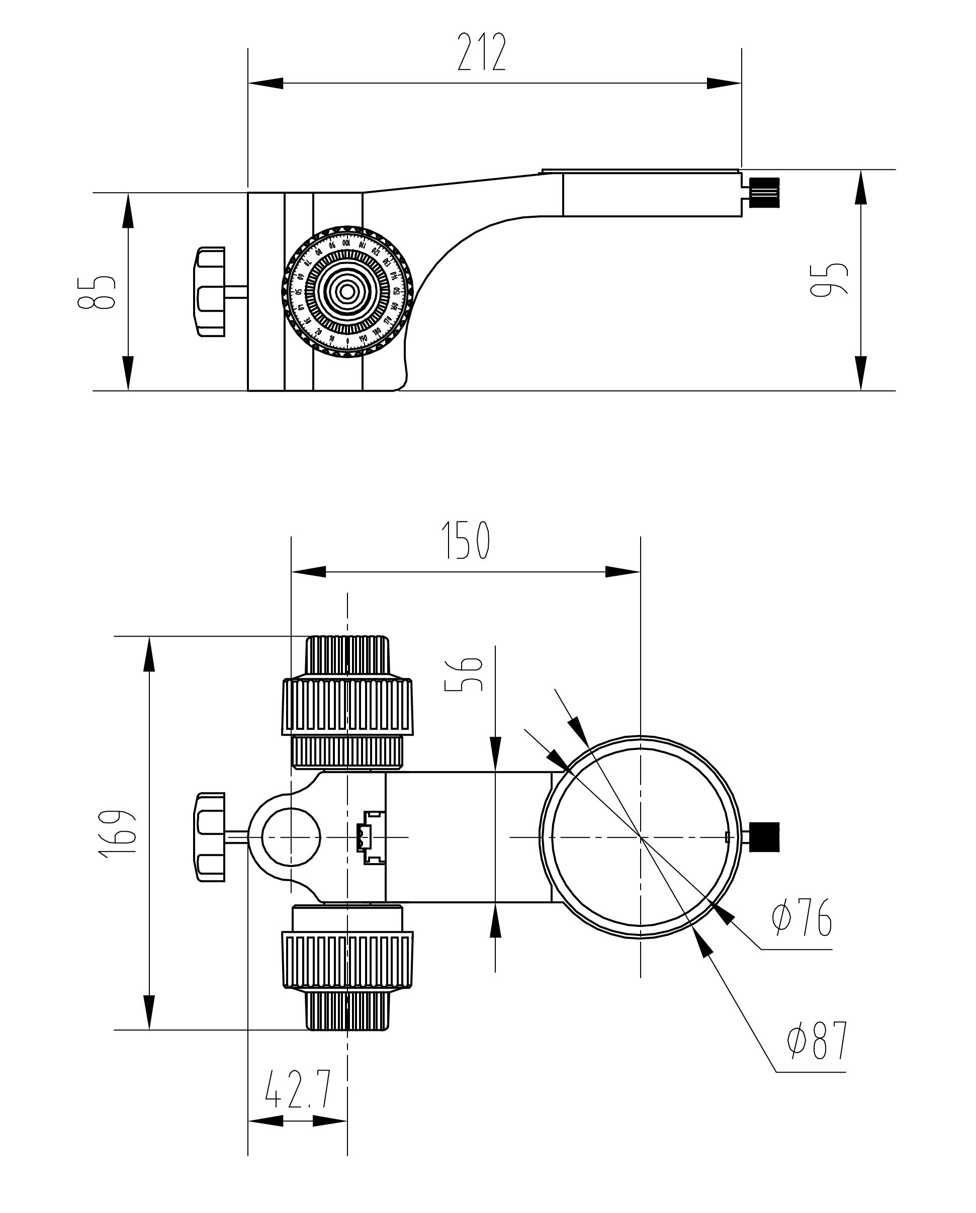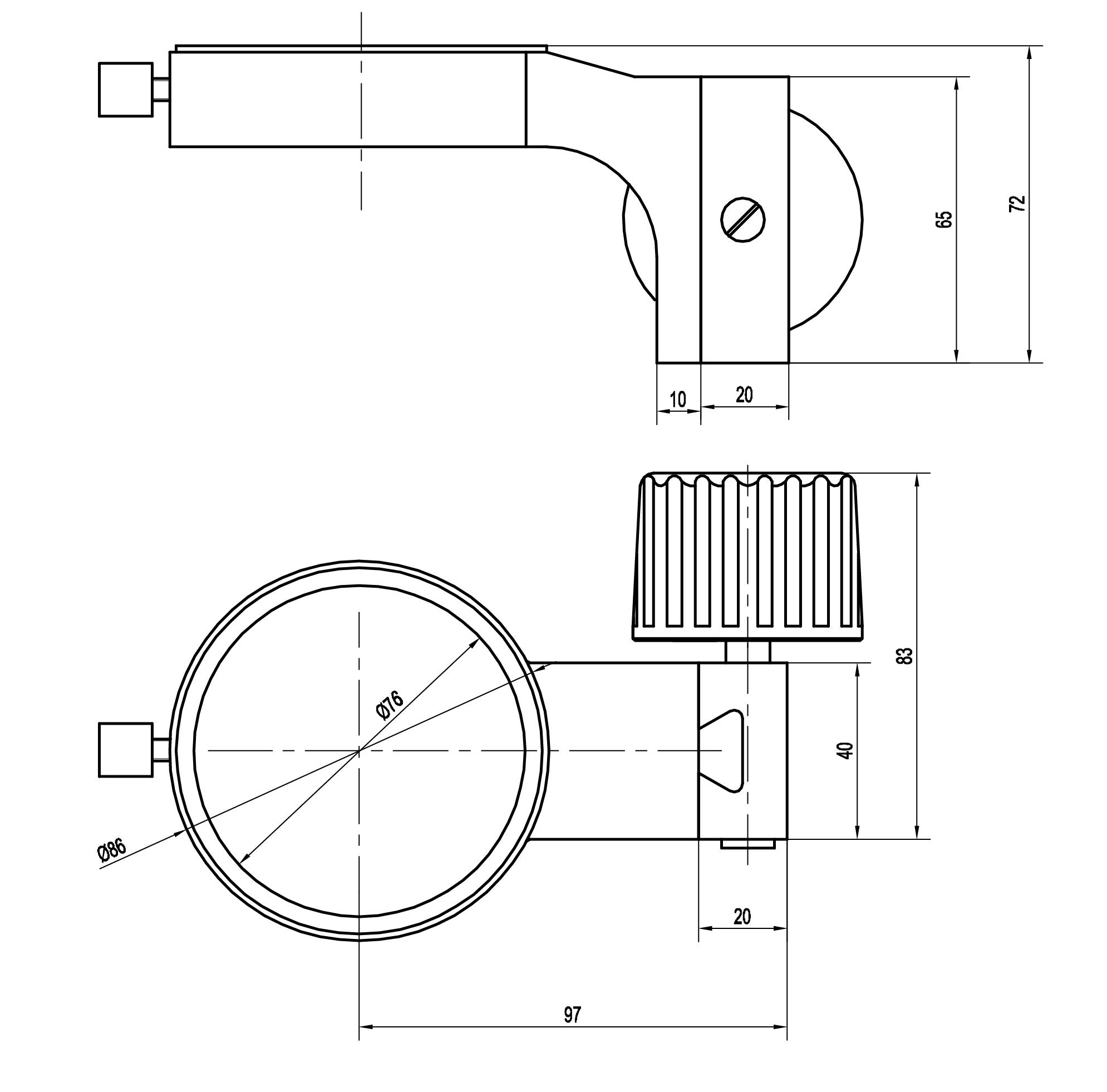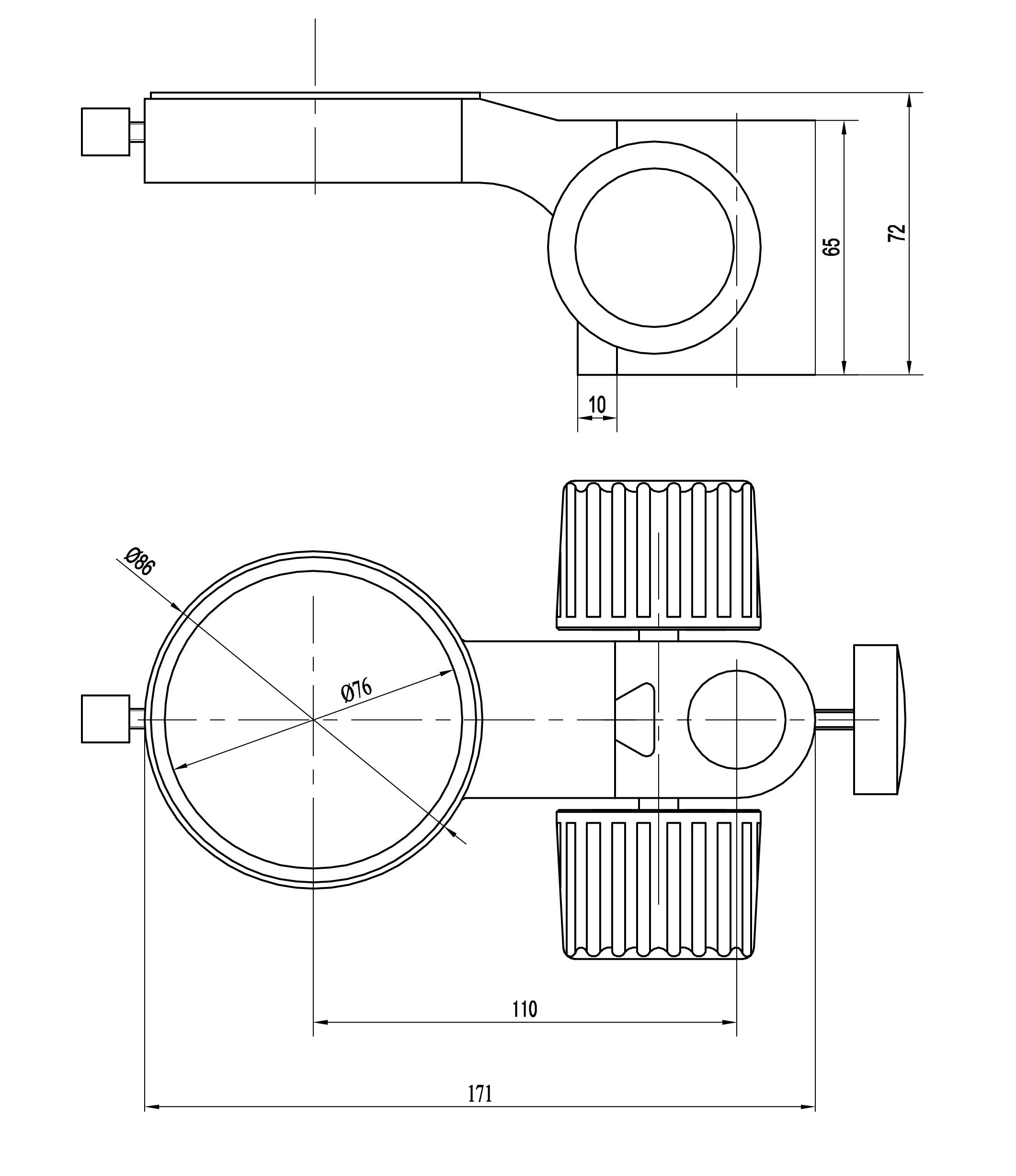 立柱安裝孔直徑Φ 25mm ,鏡體安裝孔直徑Φ 76mm ,