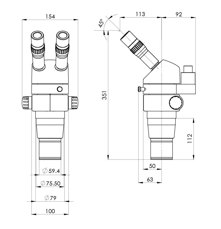 瞳距調(diào)節(jié)范圍(用10X目鏡)