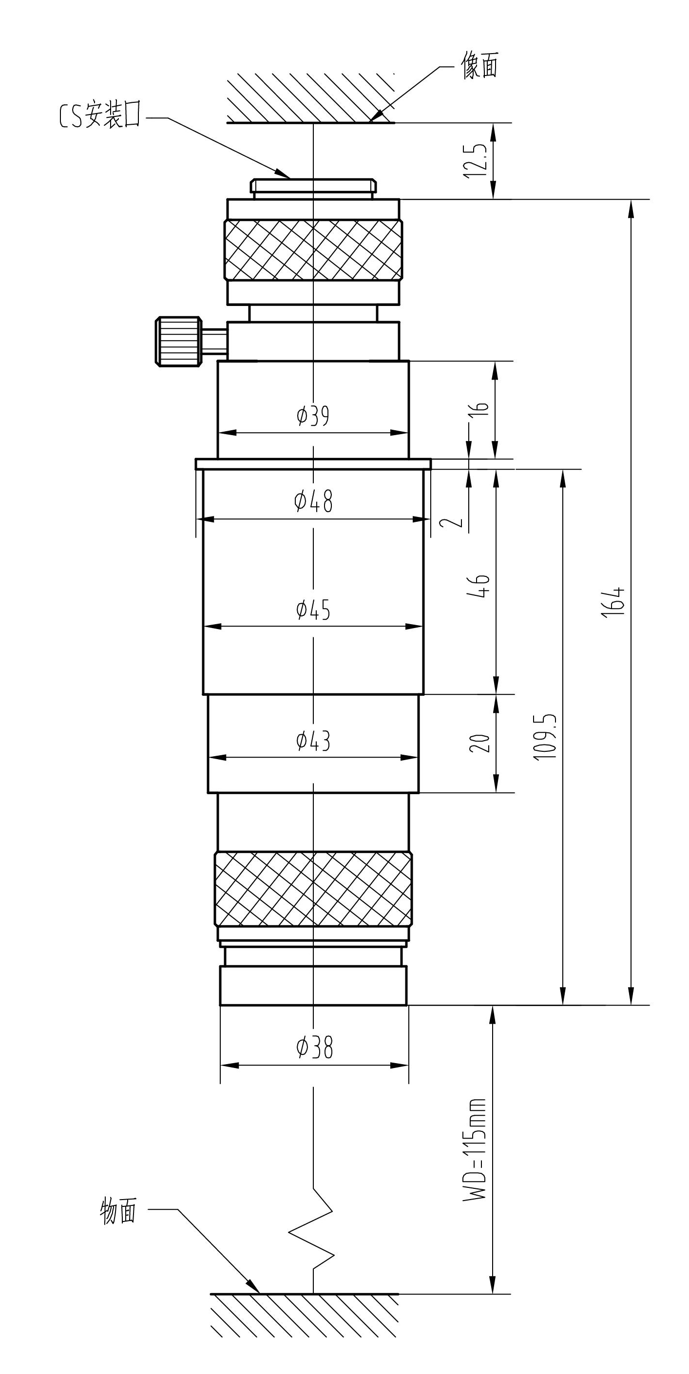 安裝尺寸:Φ45mm 最大兼容相機:1/2" CCD螺紋接口:1英吋32扣